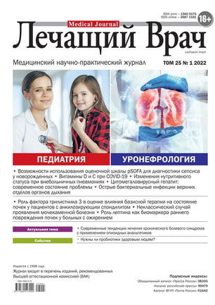 Научно-практический медицинский журнал, рекомендован Высшей Аттестационной Комиссией (ВАК).