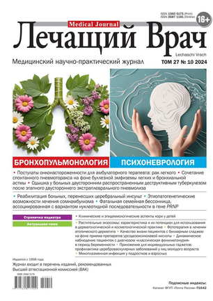 Научно-практический медицинский журнал, рекомендован Высшей Аттестационной Комиссией (ВАК).