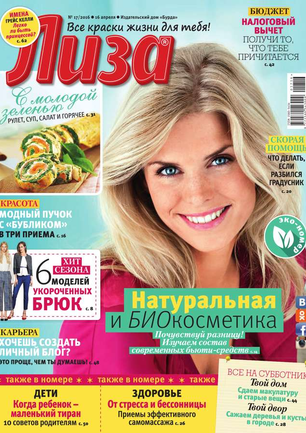 Самый популярный в России еженедельный журнал для молодых женщин «Лиза» стал еще интереснее, еще привлекательнее для читательниц. Теперь больше знаменитостей на страницах любимого журнала! Фитнес со звездой и звездный макияж, уроки стиля и самые горячие новости из жизни кумиров. А еще — модный шопинг, актуальная мода, новинки косметики и великолепные идеи для дома. Романтические истории о настоящей любви и рассказы читательниц о разных жизненных ситуациях. Аспекты психологии, секреты успешных отношений с окружающими и искусство сохранения любви.