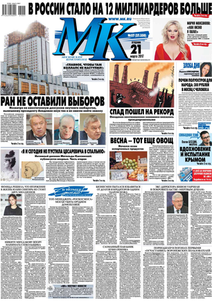 Московский комсомолец - популярная российская газета. Выходит во всех крупных городах России. Ежедневно обновляемые статьи, обзоры, комментарии. Собственная лента новостей. Выходит с 11 декабря 1919 г. Распространяется по всей России, в ближнем зарубежье, в Европе и Америке.