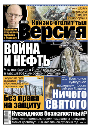 Общероссийская еженедельная газета «Наша Версия» сегодня - это один из ведущих еженедельников журналистских расследований – жесткий и информативный, остроумный и понятный.