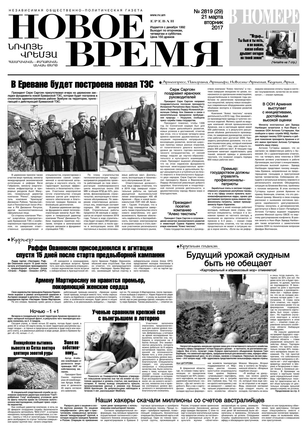 Общественно- политическая газета “Новое Время” была создана в 1992-м году и за 20 лет своего существования сумела заслужить среди армянских читателей право называться лучшей русскоязычной газетой в РА. Помимо сугубо политических тем издание обращается также к вопросам социальным, научным, культурным. Внимание уделяется и проблемам армянской диаспоры…