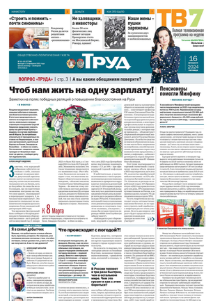 Одна из старейших общественно-политических газет (издается с февраля 1921 года). Корреспонденты «Труда» ежедневно рассказывают читателям о политике, культуре, спорте, экономике, жизни общества, самых интересных новостях дня и многом другом. Издание рассчитано на широкий круг читателей.