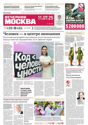 «Вечерняя Москва» — ежедневная российская вечерняя газета, старейшее из вечерних изданий в России, учрежденное в 1923 году. Выходит пять дней в неделю, кроме субботы и воскресенья. Отличается тем, что рассказывает о событиях еще не завершившегося дня. Оперативно освещает хронику и особенности жизни Москвы, охватывает все слои общества и большинство профессиональных и возрастных групп читателей.Издание представлено тремя выпусками – утренним ежедневным, вечерним (выходит три раза в неделю), еженедельным (выходит по четвергам).