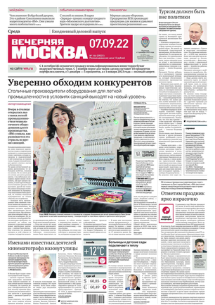 «Вечерняя Москва» — ежедневная российская вечерняя газета, старейшее из вечерних изданий в России, учрежденное в 1923 году. Выходит пять дней в неделю, кроме субботы и воскресенья. Отличается тем, что рассказывает о событиях еще не завершившегося дня. Оперативно освещает хронику и особенности жизни Москвы, охватывает все слои общества и большинство профессиональных и возрастных групп читателей.Издание представлено тремя выпусками – утренним ежедневным, вечерним (выходит три раза в неделю), еженедельным (выходит по четвергам).