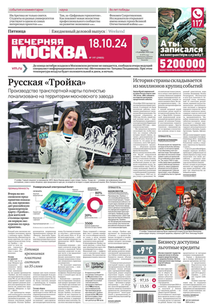 «Вечерняя Москва» — ежедневная российская вечерняя газета, старейшее из вечерних изданий в России, учрежденное в 1923 году. Выходит пять дней в неделю, кроме субботы и воскресенья. Отличается тем, что рассказывает о событиях еще не завершившегося дня. Оперативно освещает хронику и особенности жизни Москвы, охватывает все слои общества и большинство профессиональных и возрастных групп читателей.Издание представлено тремя выпусками – утренним ежедневным, вечерним (выходит три раза в неделю), еженедельным (выходит по четвергам).