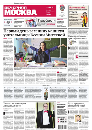«Вечерняя Москва» — ежедневная российская вечерняя газета, старейшее из вечерних изданий в России, учрежденное в 1923 году. Выходит пять дней в неделю, кроме субботы и воскресенья. Отличается тем, что рассказывает о событиях еще не завершившегося дня. Оперативно освещает хронику и особенности жизни Москвы, охватывает все слои общества и большинство профессиональных и возрастных групп читателей.Издание представлено тремя выпусками – утренним ежедневным, вечерним (выходит три раза в неделю), еженедельным (выходит по четвергам).