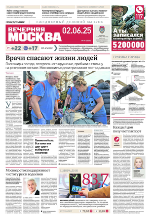 «Вечерняя Москва» — ежедневная российская вечерняя газета, старейшее из вечерних изданий в России, учрежденное в 1923 году. Выходит пять дней в неделю, кроме субботы и воскресенья. Отличается тем, что рассказывает о событиях еще не завершившегося дня. Оперативно освещает хронику и особенности жизни Москвы, охватывает все слои общества и большинство профессиональных и возрастных групп читателей.Издание представлено тремя выпусками – утренним ежедневным, вечерним (выходит три раза в неделю), еженедельным (выходит по четвергам).