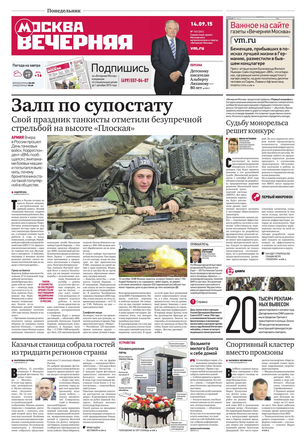 «Вечерняя Москва» — ежедневная российская вечерняя газета, старейшее из вечерних изданий в России, учрежденное в 1923 году. Выходит пять дней в неделю, кроме субботы и воскресенья. Отличается тем, что рассказывает о событиях еще не завершившегося дня. Оперативно освещает хронику и особенности жизни Москвы, охватывает все слои общества и большинство профессиональных и возрастных групп читателей.Издание представлено тремя выпусками – утренним ежедневным, вечерним (выходит три раза в неделю), еженедельным (выходит по четвергам).