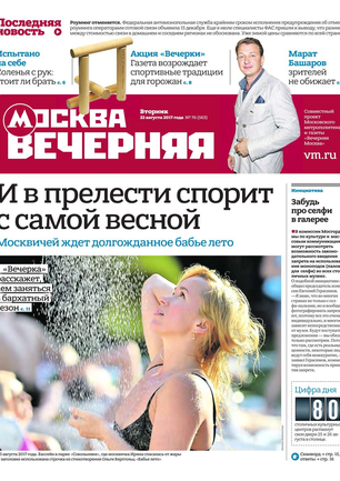 «Вечерняя Москва» — ежедневная российская вечерняя газета, старейшее из вечерних изданий в России, учрежденное в 1923 году. Выходит пять дней в неделю, кроме субботы и воскресенья. Отличается тем, что рассказывает о событиях еще не завершившегося дня. Оперативно освещает хронику и особенности жизни Москвы, охватывает все слои общества и большинство профессиональных и возрастных групп читателей.Издание представлено тремя выпусками – утренним ежедневным, вечерним (выходит три раза в неделю), еженедельным (выходит по четвергам).