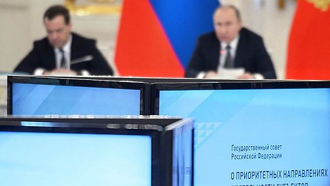 Президент обратил внимание, что «сегодня у нас первое заседание Госсовета после выборов президента Российской Федерации» (тут оставалось со значением посмотреть на себя.— А. К.).