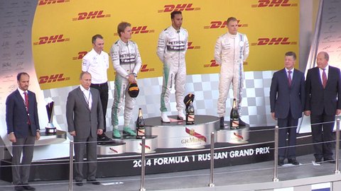Первым в истории победителем Гран-при в Сочи стал Луис Хэмильтон из команды "Мерседес". До церемонии награждения Владимир Путин лично подошел и поздравил тройку призеров. Перед началом награждения трассу открыли для болельщиков, и сотни зрителей с трибун устремились к месту проведения церемонии. Кубок победителю вручил Владимир Путин, и едва президент ушел с пьедестала, как пилоты начали поливать все вокруг шампанским. Луиса Хэмильтона тут же интервьюировали в прямом эфире, британец приветствовал аудиторию по-русски: "Всем привет!".