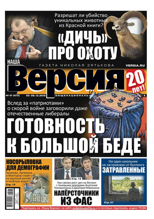 Общероссийская еженедельная газета «Наша Версия» сегодня - это один из ведущих еженедельников журналистских расследований – жесткий и информативный, остроумный и понятный.