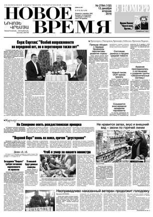 Общественно- политическая газета “Новое Время” была создана в 1992-м году и за 20 лет своего существования сумела заслужить среди армянских читателей право называться лучшей русскоязычной газетой в РА. Помимо сугубо политических тем издание обращается также к вопросам социальным, научным, культурным. Внимание уделяется и проблемам армянской диаспоры…