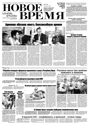 Общественно- политическая газета “Новое Время” была создана в 1992-м году и за 20 лет своего существования сумела заслужить среди армянских читателей право называться лучшей русскоязычной газетой в РА. Помимо сугубо политических тем издание обращается также к вопросам социальным, научным, культурным. Внимание уделяется и проблемам армянской диаспоры…