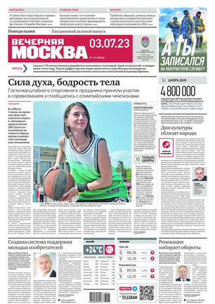 «Вечерняя Москва» — ежедневная российская вечерняя газета, старейшее из вечерних изданий в России, учрежденное в 1923 году. Выходит пять дней в неделю, кроме субботы и воскресенья. Отличается тем, что рассказывает о событиях еще не завершившегося дня. Оперативно освещает хронику и особенности жизни Москвы, охватывает все слои общества и большинство профессиональных и возрастных групп читателей.Издание представлено тремя выпусками – утренним ежедневным, вечерним (выходит три раза в неделю), еженедельным (выходит по четвергам).