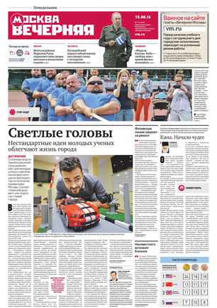 «Вечерняя Москва» — ежедневная российская вечерняя газета, старейшее из вечерних изданий в России, учрежденное в 1923 году. Выходит пять дней в неделю, кроме субботы и воскресенья. Отличается тем, что рассказывает о событиях еще не завершившегося дня. Оперативно освещает хронику и особенности жизни Москвы, охватывает все слои общества и большинство профессиональных и возрастных групп читателей.Издание представлено тремя выпусками – утренним ежедневным, вечерним (выходит три раза в неделю), еженедельным (выходит по четвергам).
