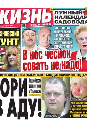Еженедельная газета, предназначенная для семейного чтения. Основные рубрики: самые скандальные и интересные события прошедшей недели, политический комментарий Леонида Шахова, пикантные истории из звездной жизни, советы профессионального психолога, действенные рецепты здоровья, гороскоп, кроссворд, конкурсы, сканворды, розыгрыши билетов в кинотеатры и множество других призов. Приложения к газете «Жизнь»: «Телеэкран» - телепрограмма с подробными анонсами кино и сериалов, «Овертайм» - спортивное обозрение.