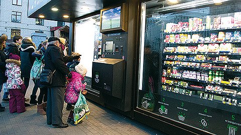 Киоск-автомат «Всё сам» следит за прохожими внимательными анимированными глазами, нарисованными на экране терминала, и без ложной скромности приветствует покупателей надписью: «Я — умный киоск». Внутри достаточно места для почти 300 товарных позиций — от наушников до кефира — и прохладно, как в холодильнике (+5 градусов Цельсия). Процесс покупки завораживает, так что перед освещенными витринами, прикрытыми антивандальным стеклом, то и дело останавливаются зеваки — поглазеть, как роботизированная корзинка перемещается внутри, собирая покупки. Все остальное тоже происходит в соответствии с последними достижениями автоматической торговли: прием оплаты (наличными или картой), выдача сдачи, печать чека. А еще киоск подрабатывает — в режиме платежного терминала: через него можно оплатить услуги ЖКХ, пополнить счет мобильного телефона, погасить кредит. С лета 2014 года пять таких киосков уже установлено в Москве.