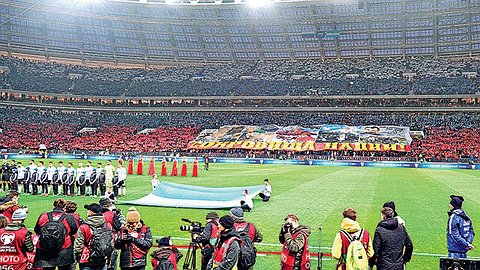 Такое объявление звучало во всех поездах Сокольнической ветки метро в часы перед матчем. Невольно подумал: неужто у нас научились футбол по-человечески организовывать? Потоки разводят, заранее предупреждают. Агрессии ни в метро, ни на выходе со станций не было. Все действительно были настроены на праздник.