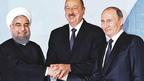 В Баку Путин с Ильхамом Алиевым и ХасаномРухани обсуждал и Карабахскую проблему с армяно-азербайджанскими отношениями, и Турцию с ее переворотами снизу-вверх и разворотам с Западана Восток, и Сирию с Каспием. Поэтому за большим круглым столом, за которым сидели Путин, Алиев и Рухани, нет-нет да возникали пусть и в виртуальном виде то Эрдоган, то Саргсян, а то и вовсе Башар Асад.